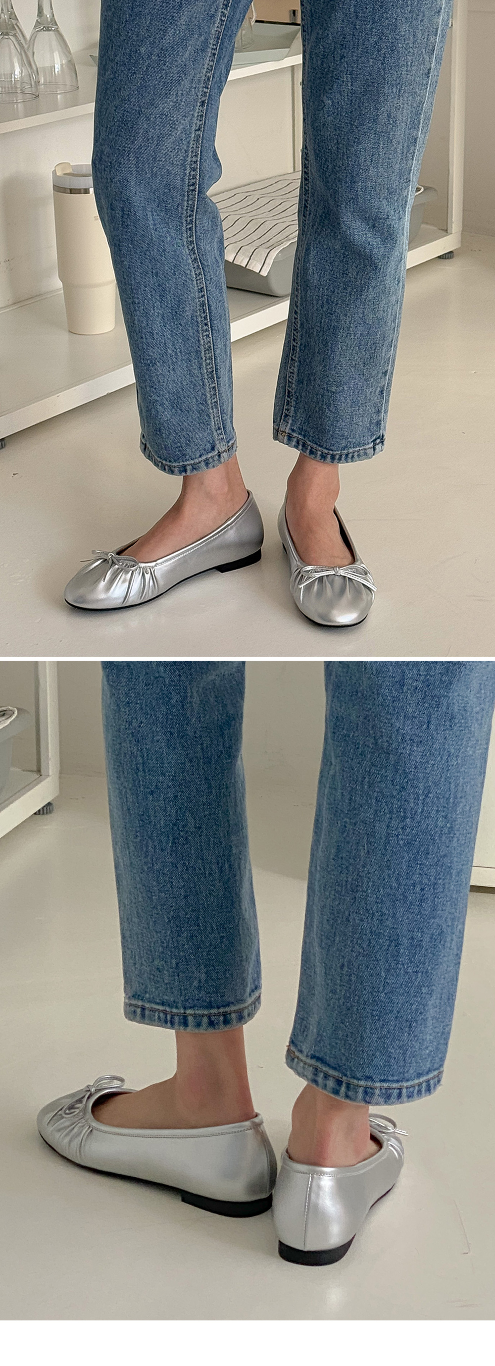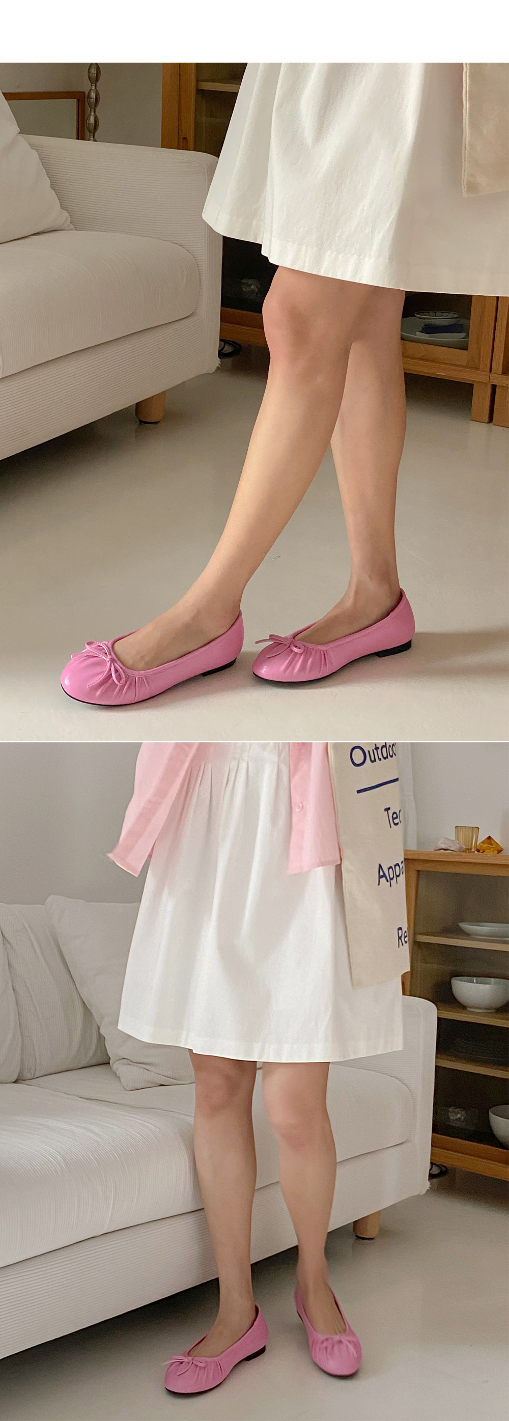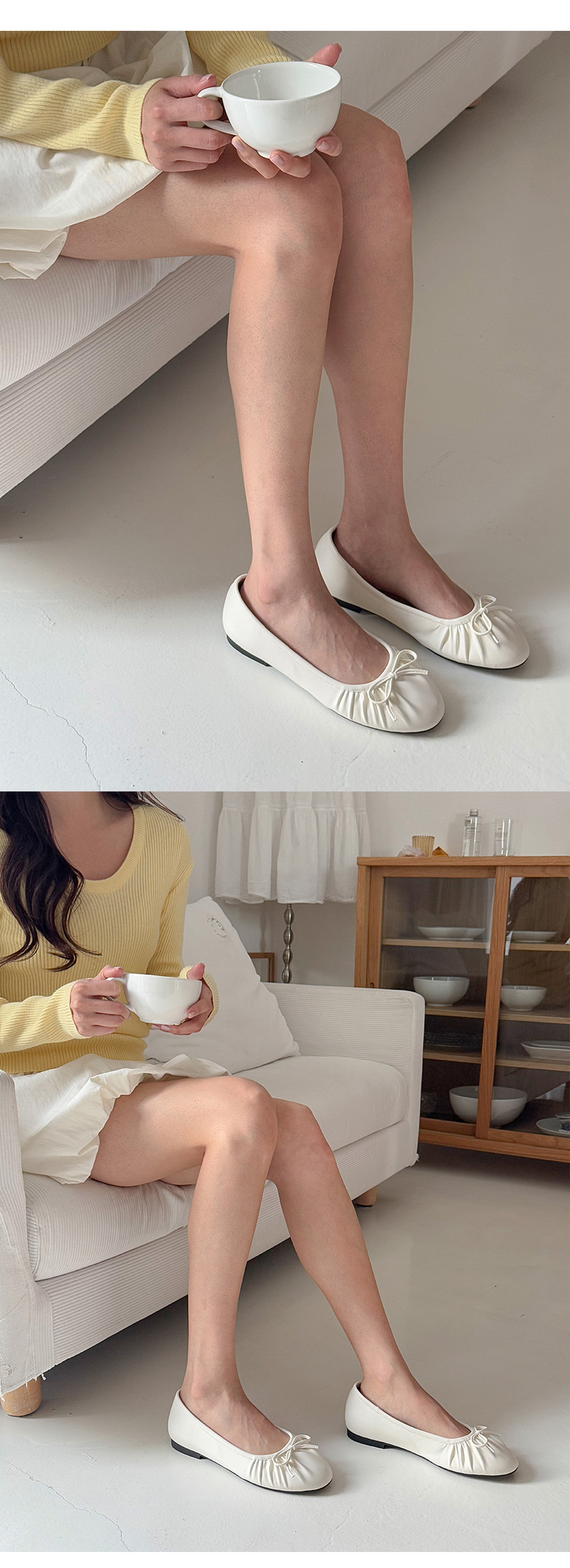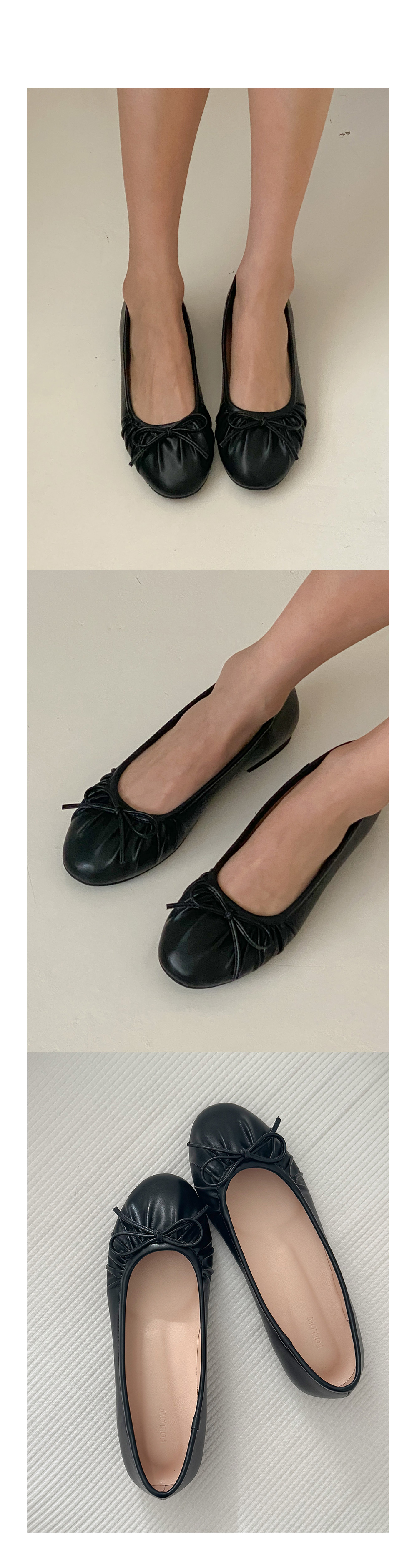 아몬드 말랑 주름 셔링 쿠션중창 리본 플랫슈즈