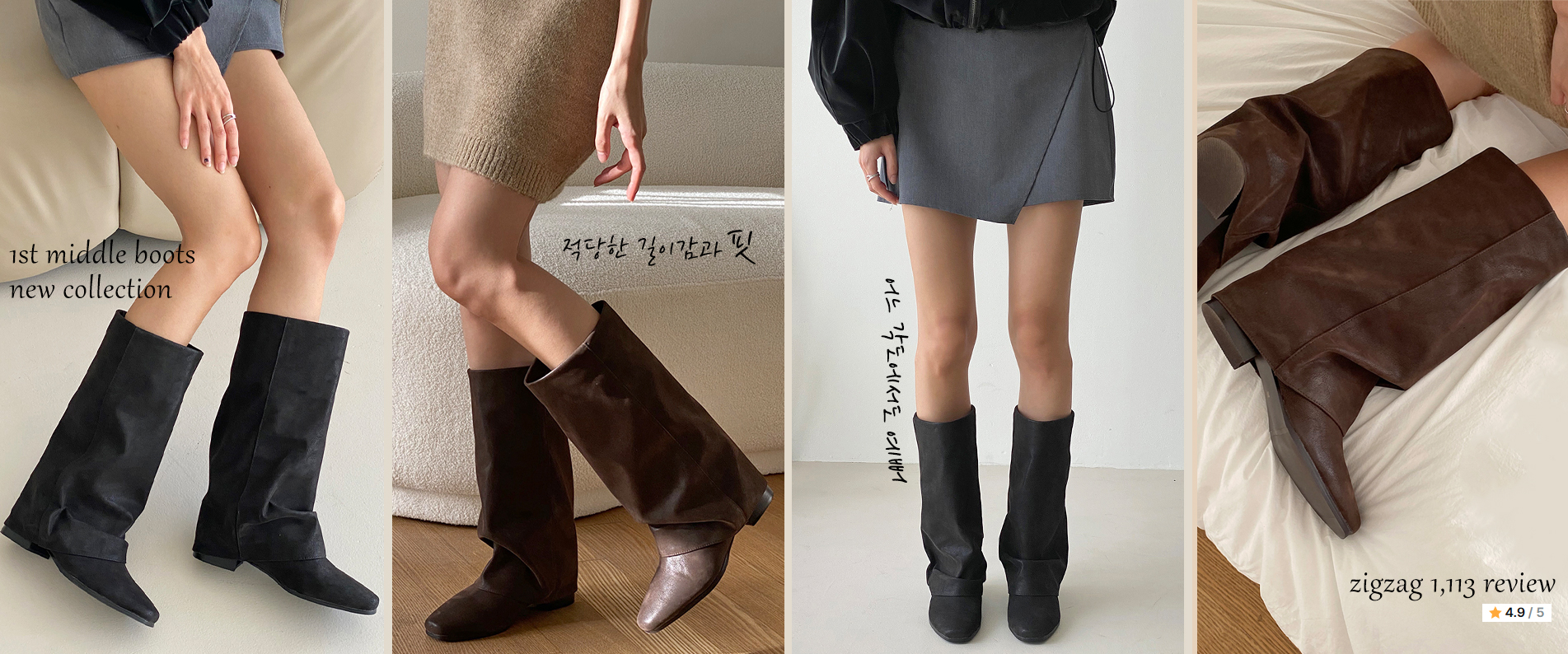 [2025FW 신상✨] 아잉 어글리 둥근코 와이드 셔링 워머 삭스 폴딩 미들 롱부츠 (3cm)