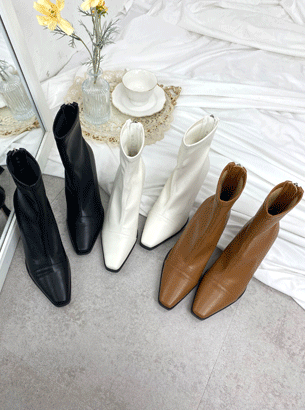 뾰족각코 절개 뒷지퍼 미들힐 앵클부츠 (7cm)