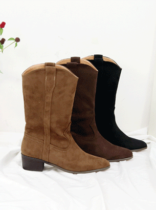 카우보이 스웨이드 미들 웨스턴 뾰족코 부츠 (4.5cm)