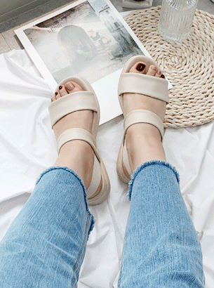 통굽 투 스트랩 밴딩 샌들 (4cm)