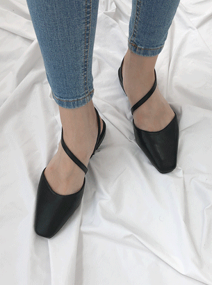 사선 스트랩 각코 로우힐 슬링백 구두 (1cm)