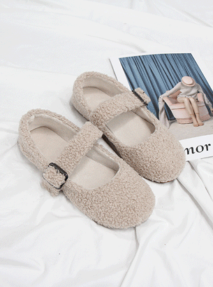 뽀글이 퍼안감 메리제인 버클 플랫슈즈 (1cm)