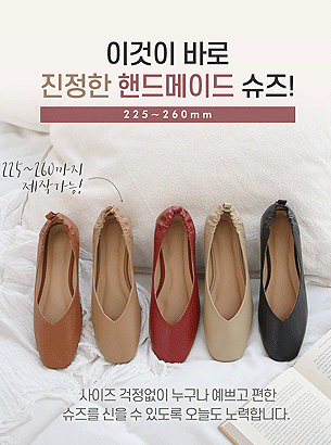 [225-260] 브이컷 주름 각코 플랫슈즈 (1cm)
