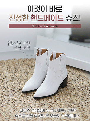[215-260] 트랜디 레더 미들힐 웨스턴 앵클부츠 (5cm)