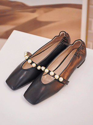 1cm 스퀘어토 진주 스트랩 플랫슈즈