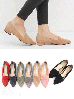 국내제작 2CM 스웨이드 뾰족코 플랫슈즈
