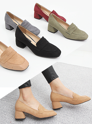 국내제작 5CM 통굽 스웨이드 페니로퍼 힐