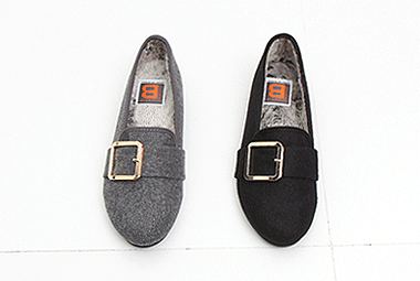 2CM굽 털안감 사각 버클 모직 겨울로퍼 [PR미각]