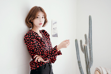 어깨 퍼프 프릴 하트 블라우스 [하트BL]