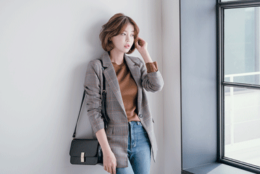 테일러드 원버튼 체크 자켓 [셀린JK]