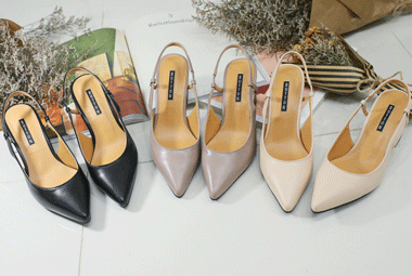 6CM굽 뾰족코 가죽 슬링백 [BU105]