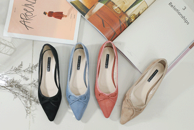 스웨이드 뾰족코 리본 플랫슈즈 [BU551]