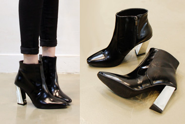 9cm사각굽 메탈 앵클 부티 [HA341]