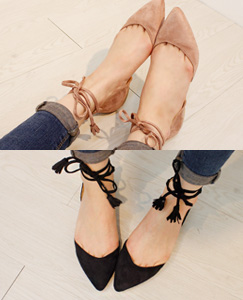 스웨이드 발목스트랩 플랫 [IS8208_1]