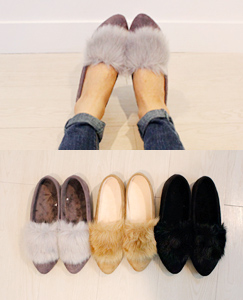 배색토끼털 플랫슈즈_털안감 [PR이지]