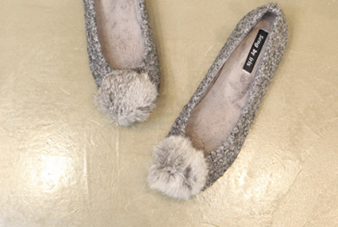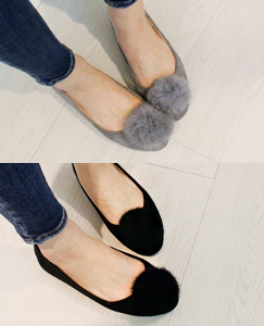 폼폼 토끼털 방울 플랫슈즈_털안감 [IS330]