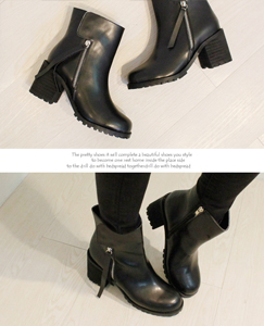 우드굽 뒷지퍼 부티힐 [SG1522]