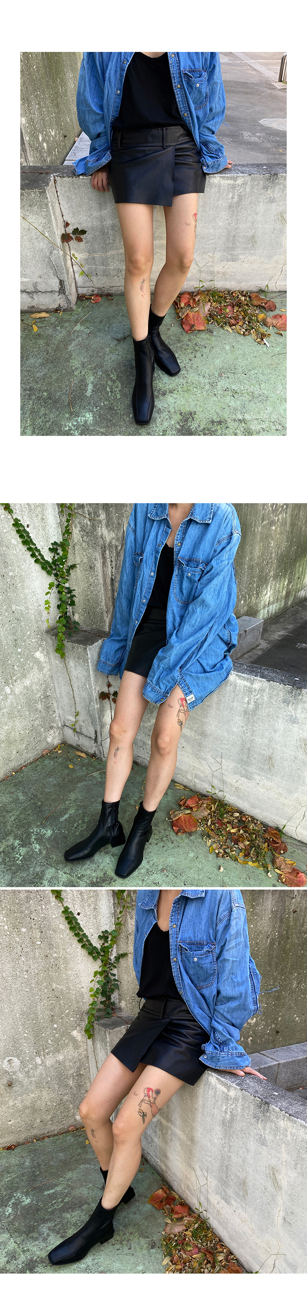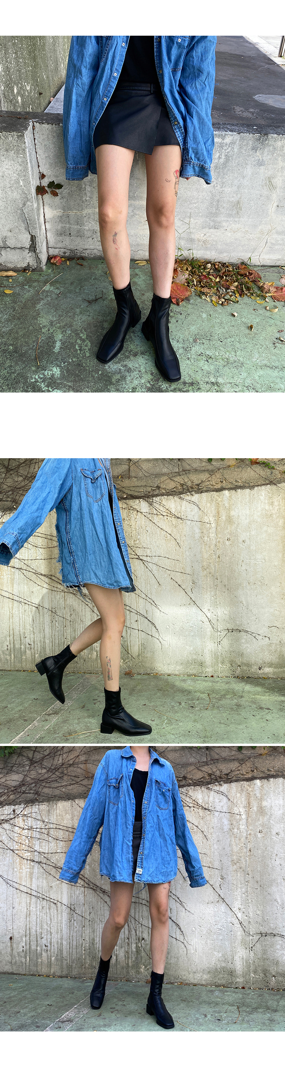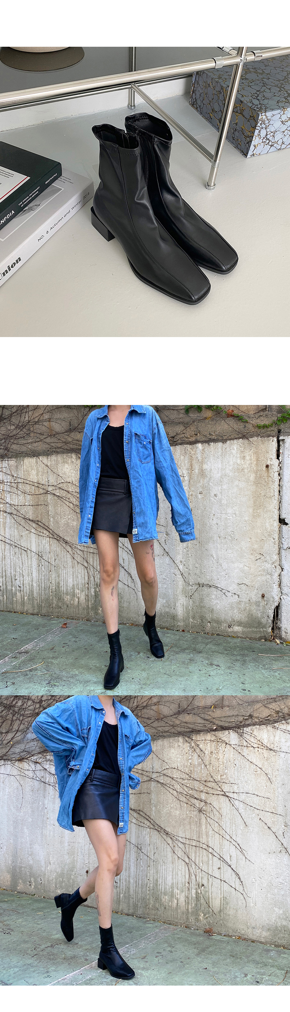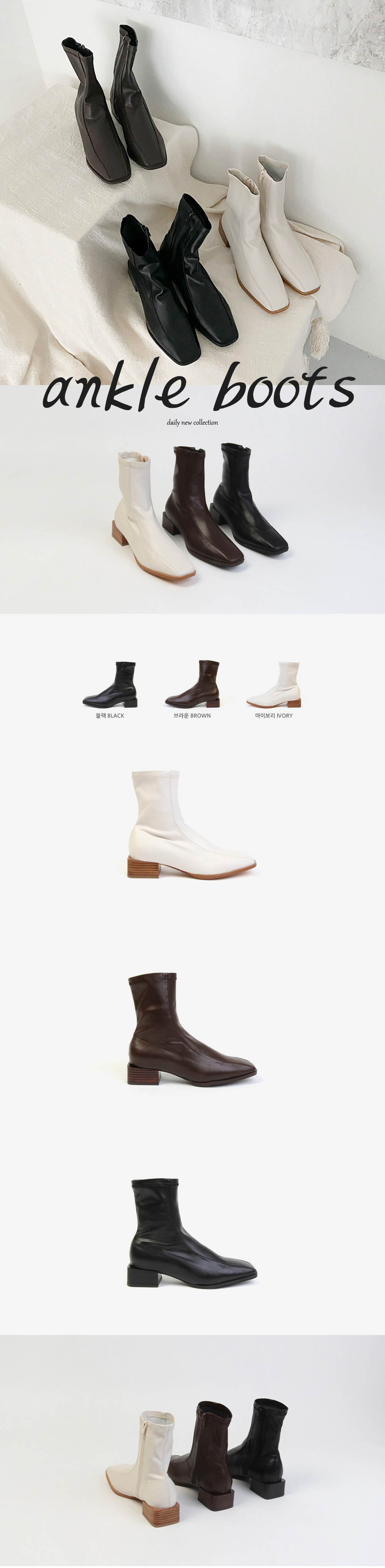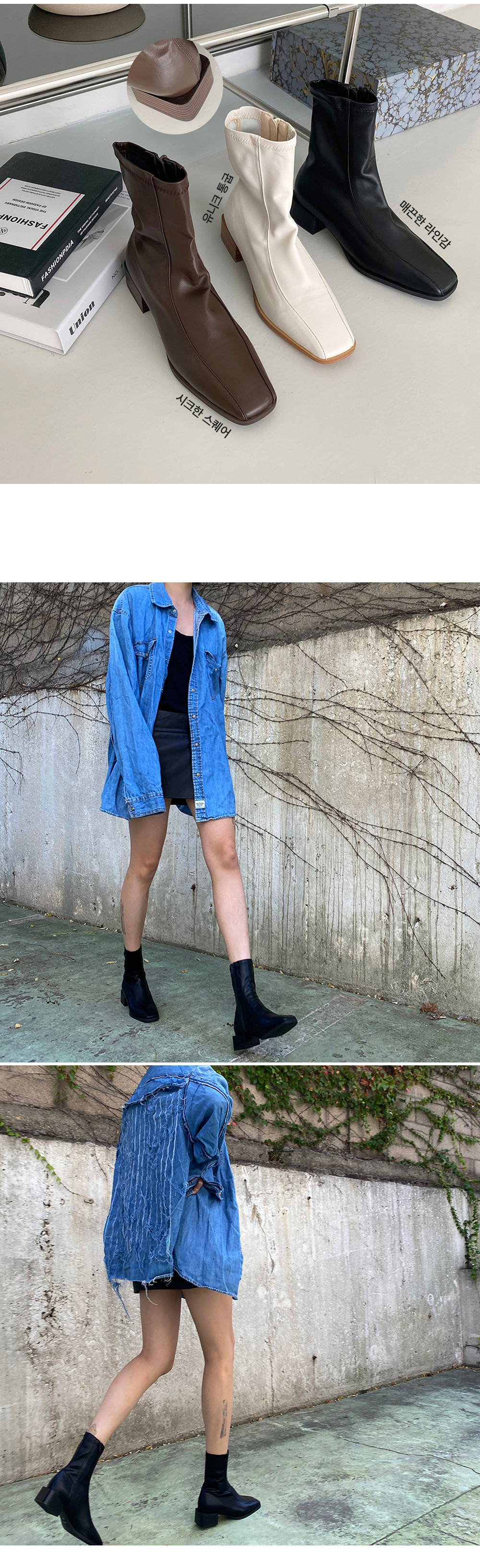 트렌디 스퀘어굽 각코 삭스 앵클부츠