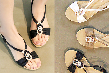 4CM굽 리본 큐빅 웨지 샌들 [KA1009]
