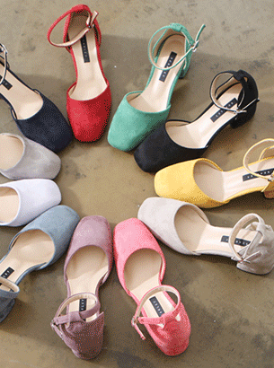 국내제작 5cm굽 둥근코 스웨이드 스트랩힐