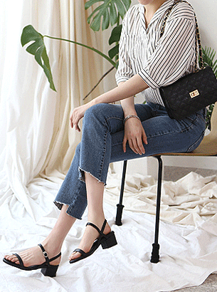 발목스트랩 통굽 미들힐 샌들 (215-260,4cm)