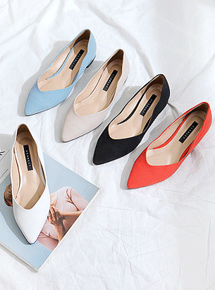 국내 2cm 여성 로우힐 물결 펌프스 구두