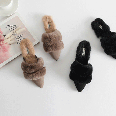 1cm 천연토끼털 뾰족코 슬리퍼 [DG810]