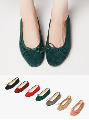 1CM굽 스웨이드 리본 플랫슈즈