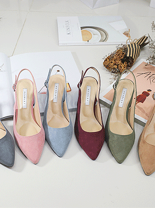 국내제작 6CM굽 스웨이드 뾰족 버클 슬링백힐