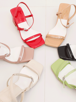 사선 스트랩 에나멜 샌들 (6cm)