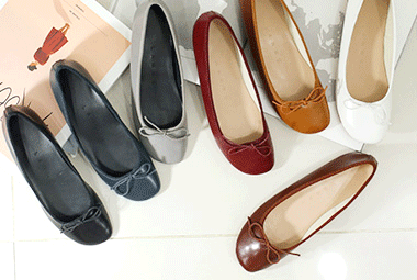 1CM굽 각코 리본 플랫슈즈 [LA0180]
