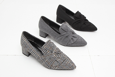 4CM굽 리본 매듭 모직로퍼 펌프스 [PR402]