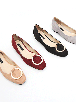 국내제작 2CM굽 각코 골드링 플랫슈즈