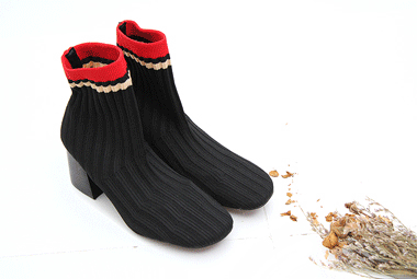 6CM굽 양말 니트 배색 앵클부츠 [MO1102]