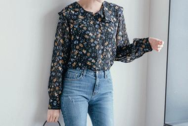 프릴 네크라인 플라워 블라우스 [샤론BL]