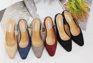 6CM굽 스웨이드 각코 미들힐 슬링백 [ LA0176]