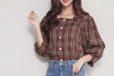 체크 카라 퍼프 블라우스 [마르니]