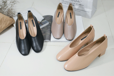 5CM굽 둥근코 가죽 미들힐 [BU102]