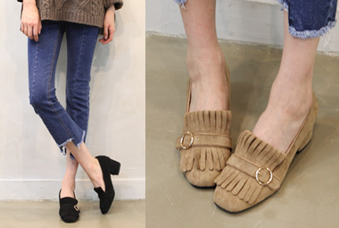 6cm굽 스웨이드 프린지 미들힐 [RN7129]