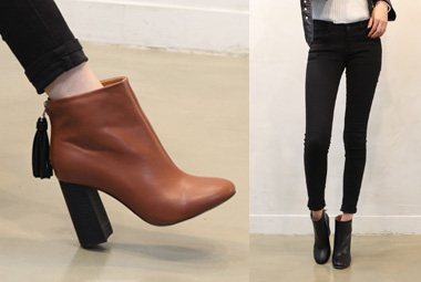 9cm굽 테슬지퍼 앵클 부티 [HR9049]