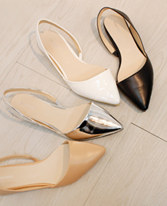 뾰족코 슬링백 사선 플랫슈즈 [B1610]