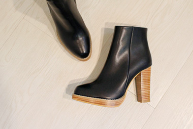 우드굽 뒷지퍼 부티힐 [SG1522]