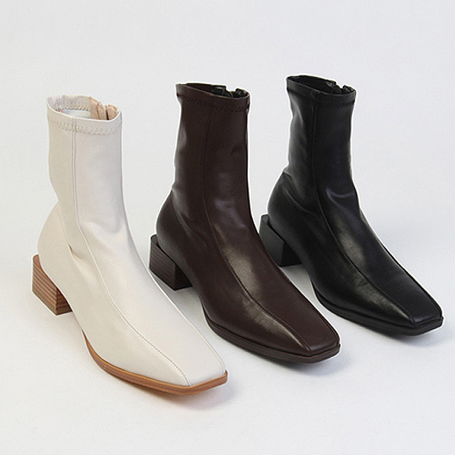 트렌디 스퀘어굽 각코 삭스 앵클부츠