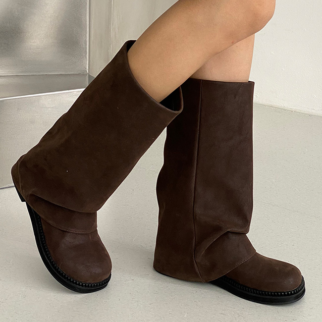 아잉 어글리 둥근코 와이드 셔링 워머 삭스 폴딩 미들 롱부츠