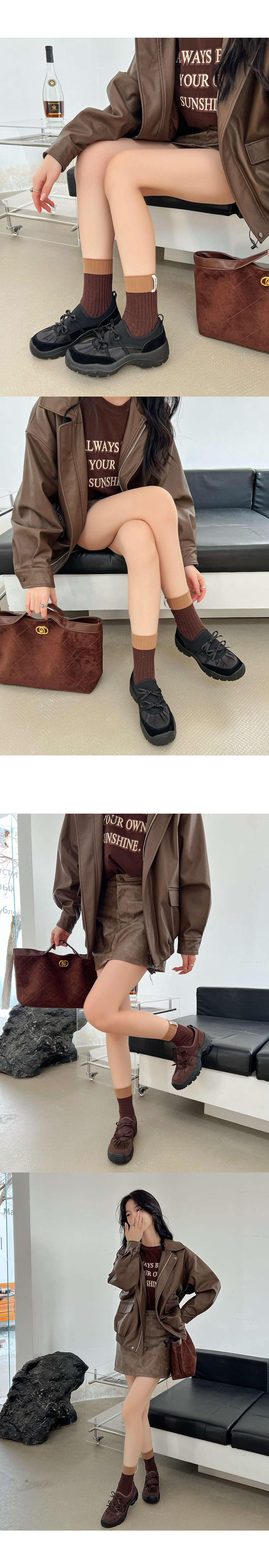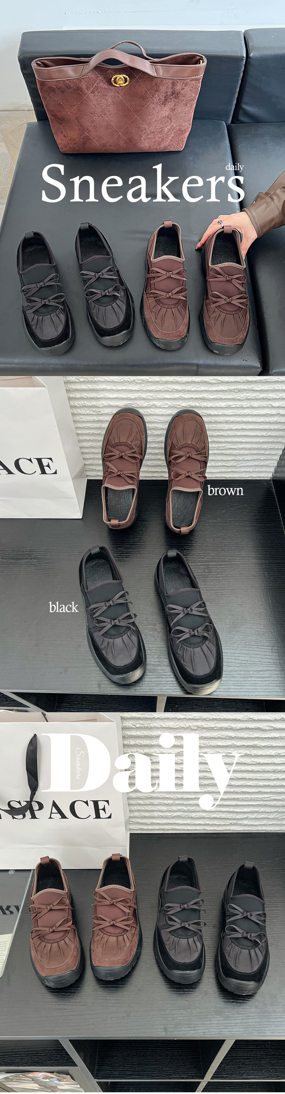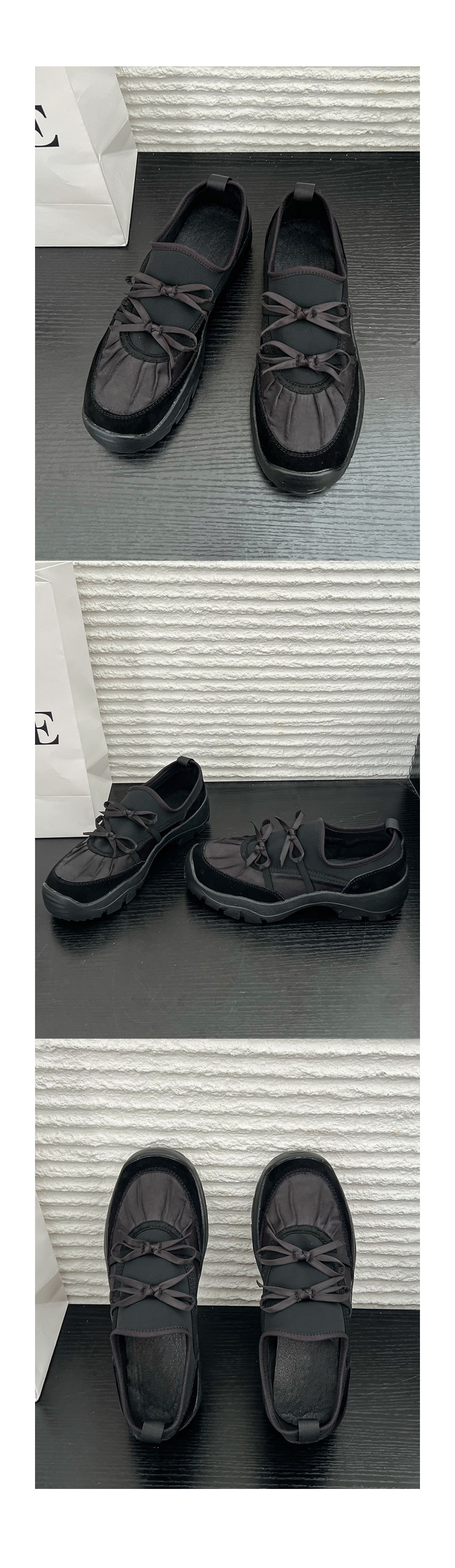 클라브 네오프렌 리본 발레코어 세틴 셔링 통굽 스니커즈 운동화