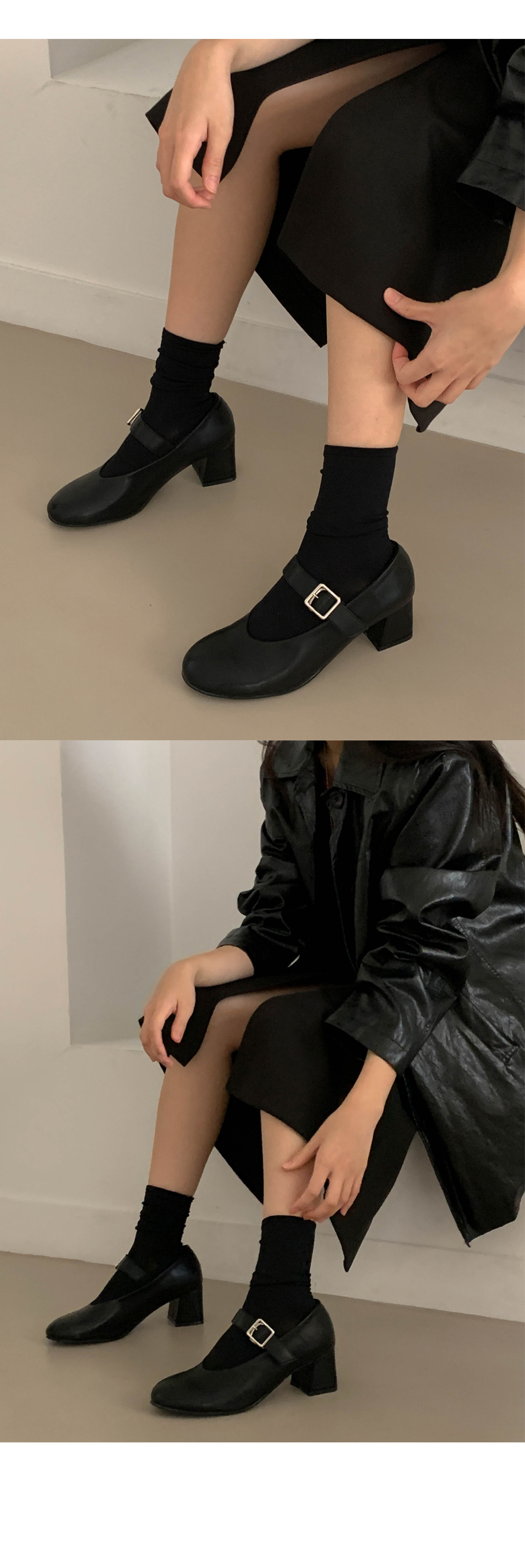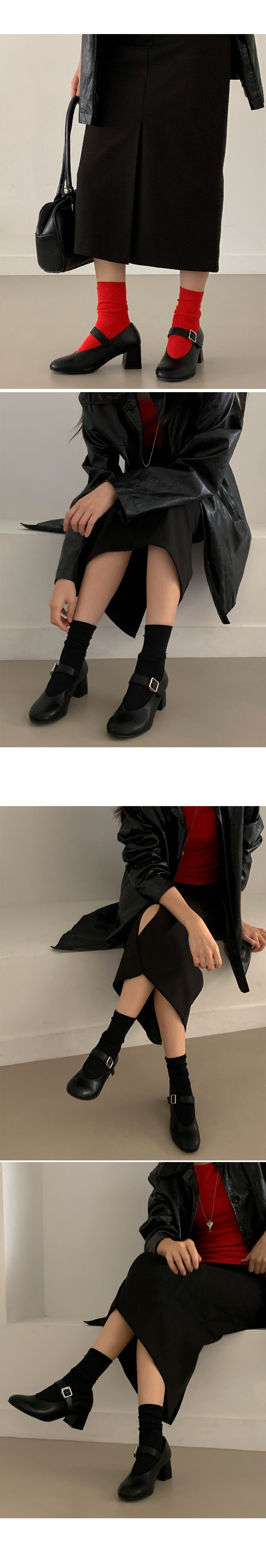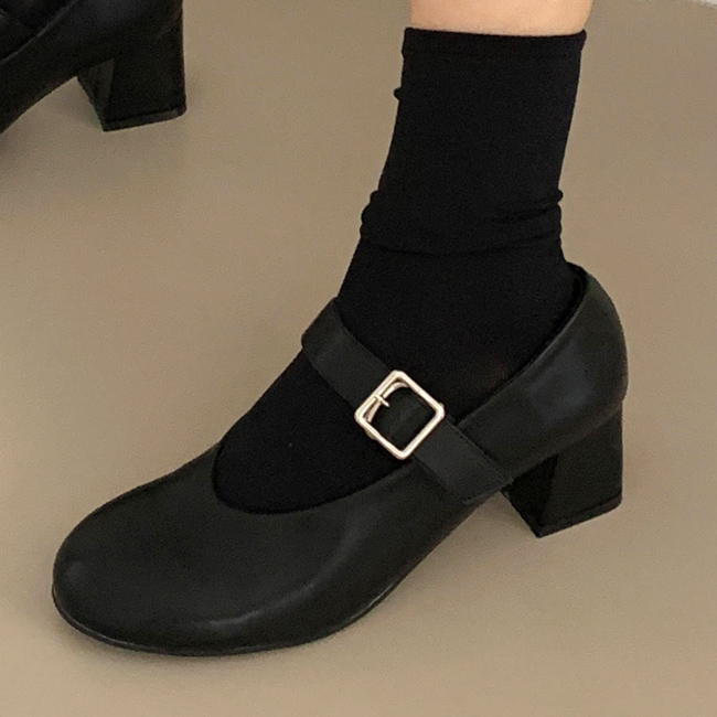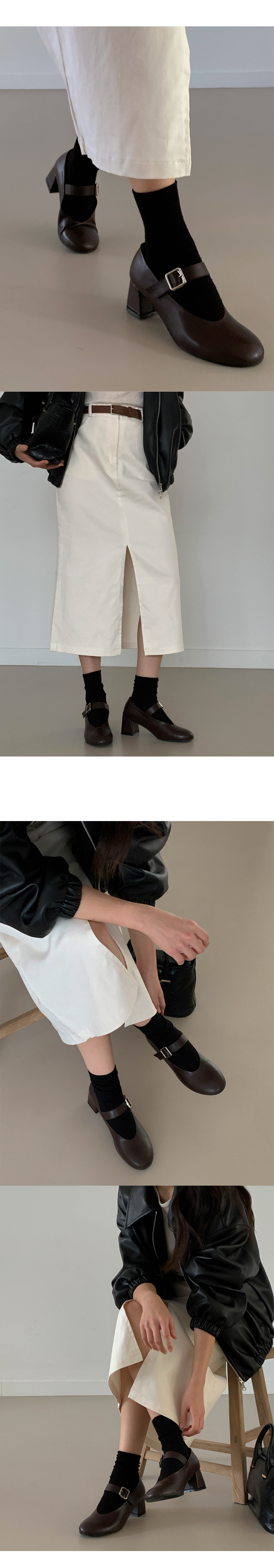 하임 메리제인 버클 스트랩 미들힐 통굽 펌프스 힐