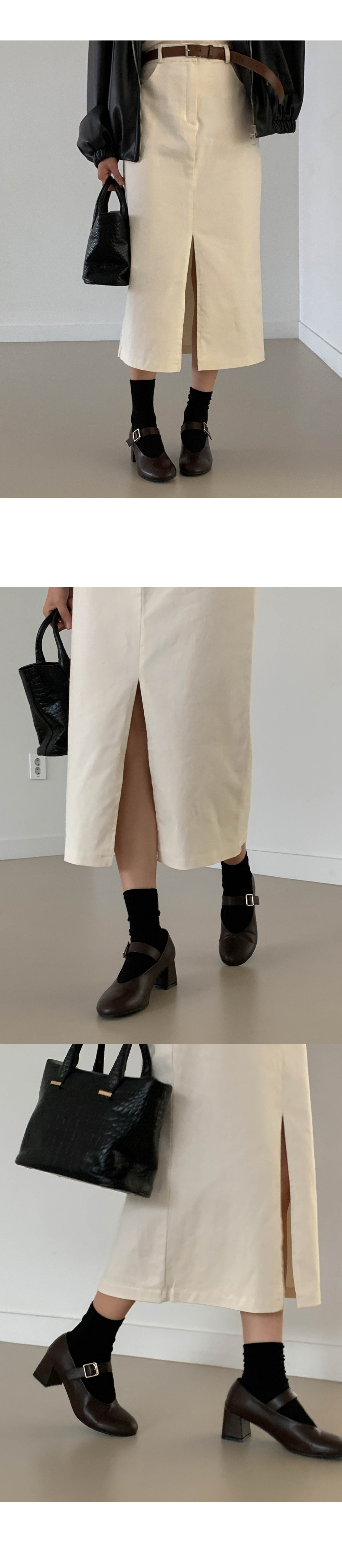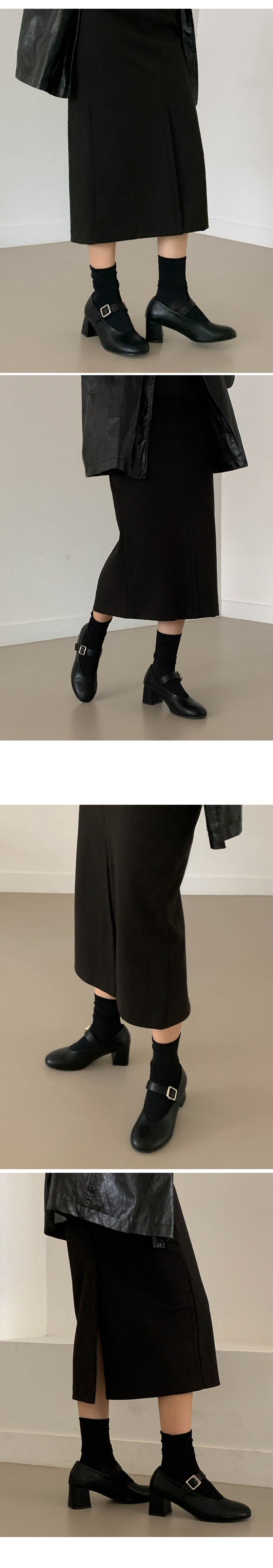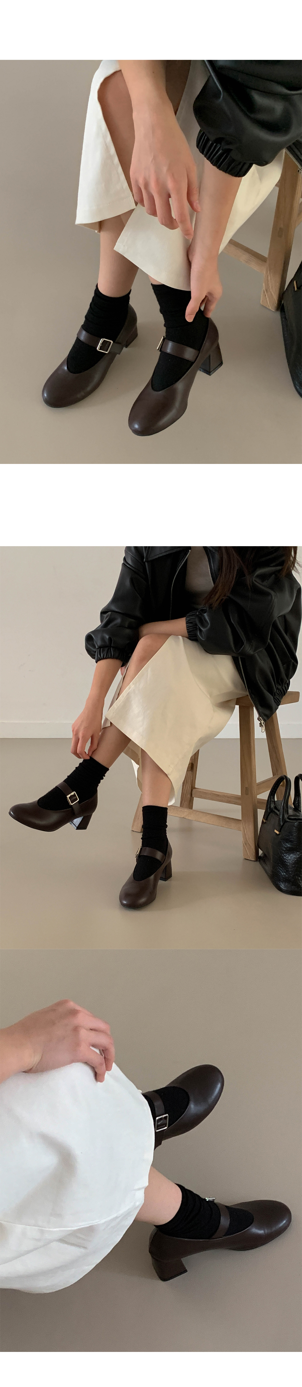 하임 메리제인 버클 스트랩 미들힐 통굽 펌프스 힐