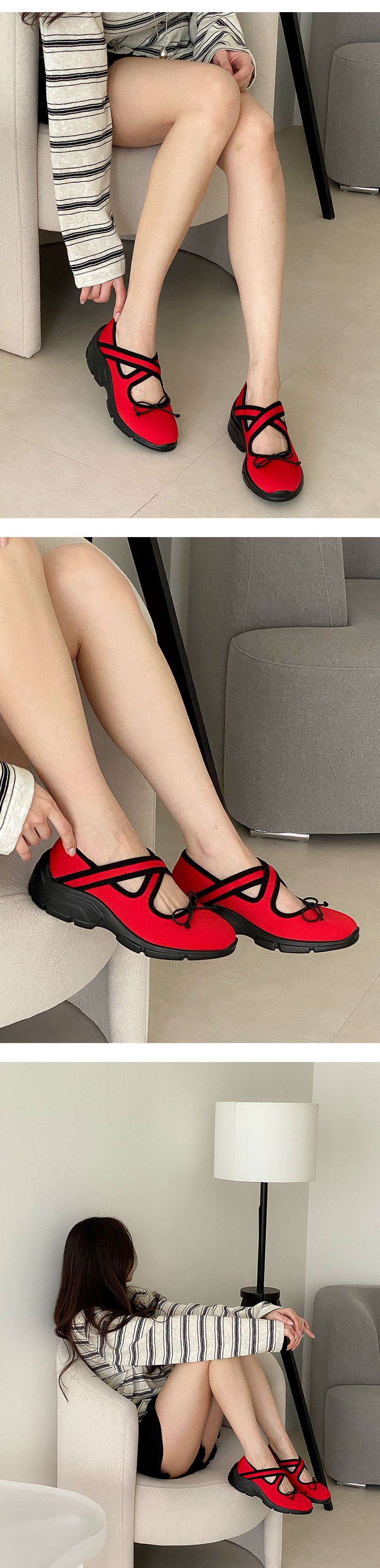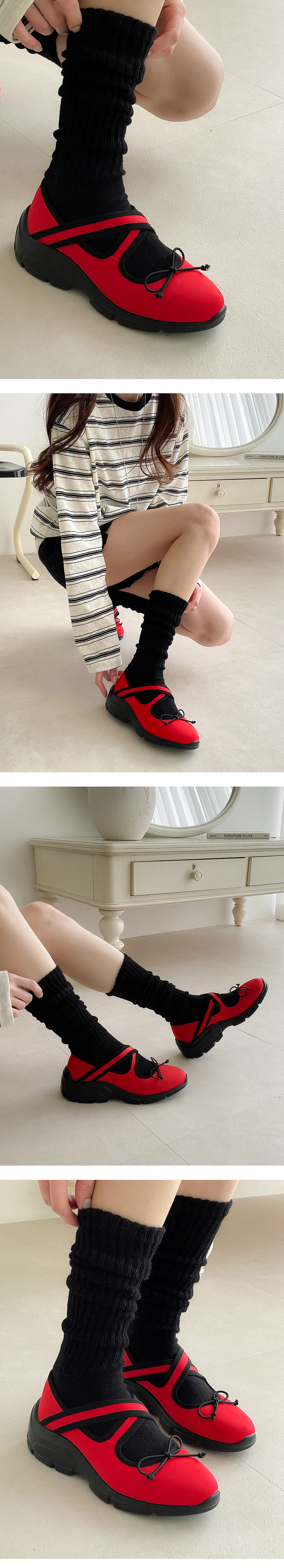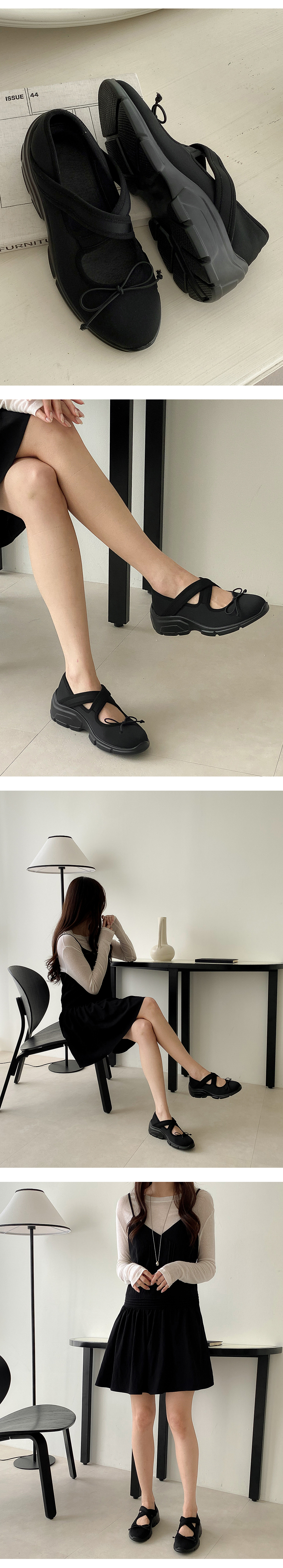 노브 크로스 밴딩 메리제인 리본 스니커즈