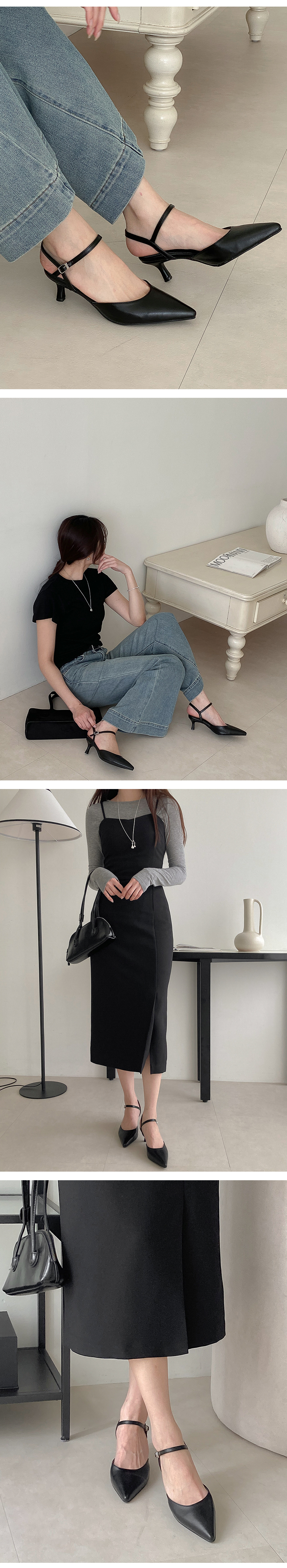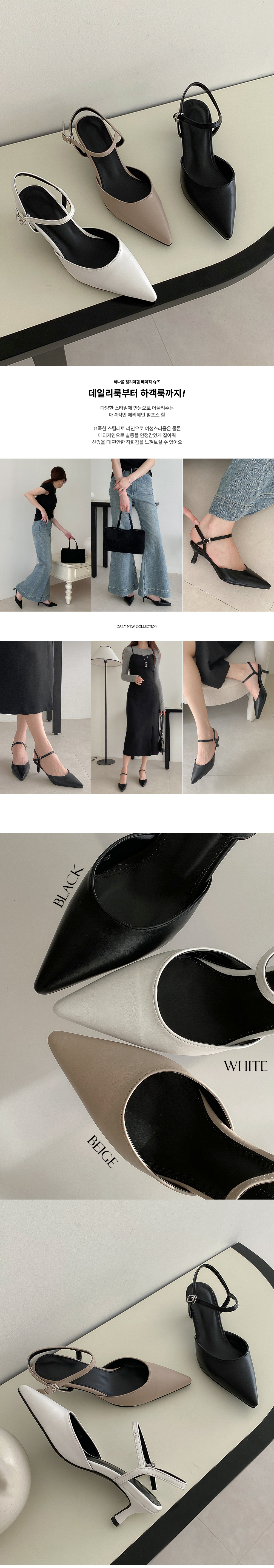 르베트 뾰족 스틸레토 발목 스트랩 키튼힐 미들굽 펌프스 슬링백 힐